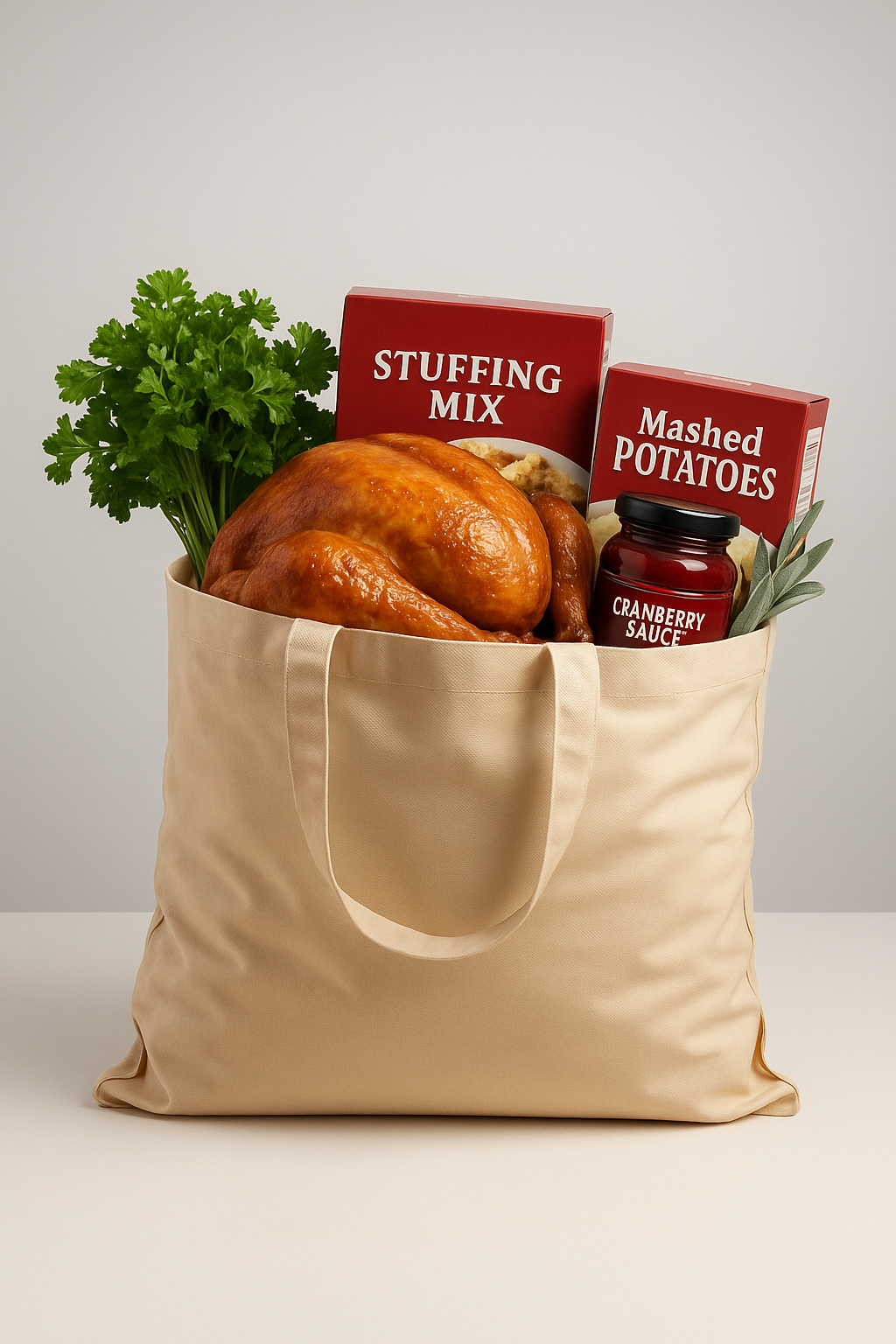 We’ll handle the grocery list — turkey, sides, and all the essentials — and stock your kitchen so you can focus on the fun part: cooking, hosting, and making memories.